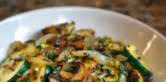 Pečene bučke s šampinjoni in čebulo