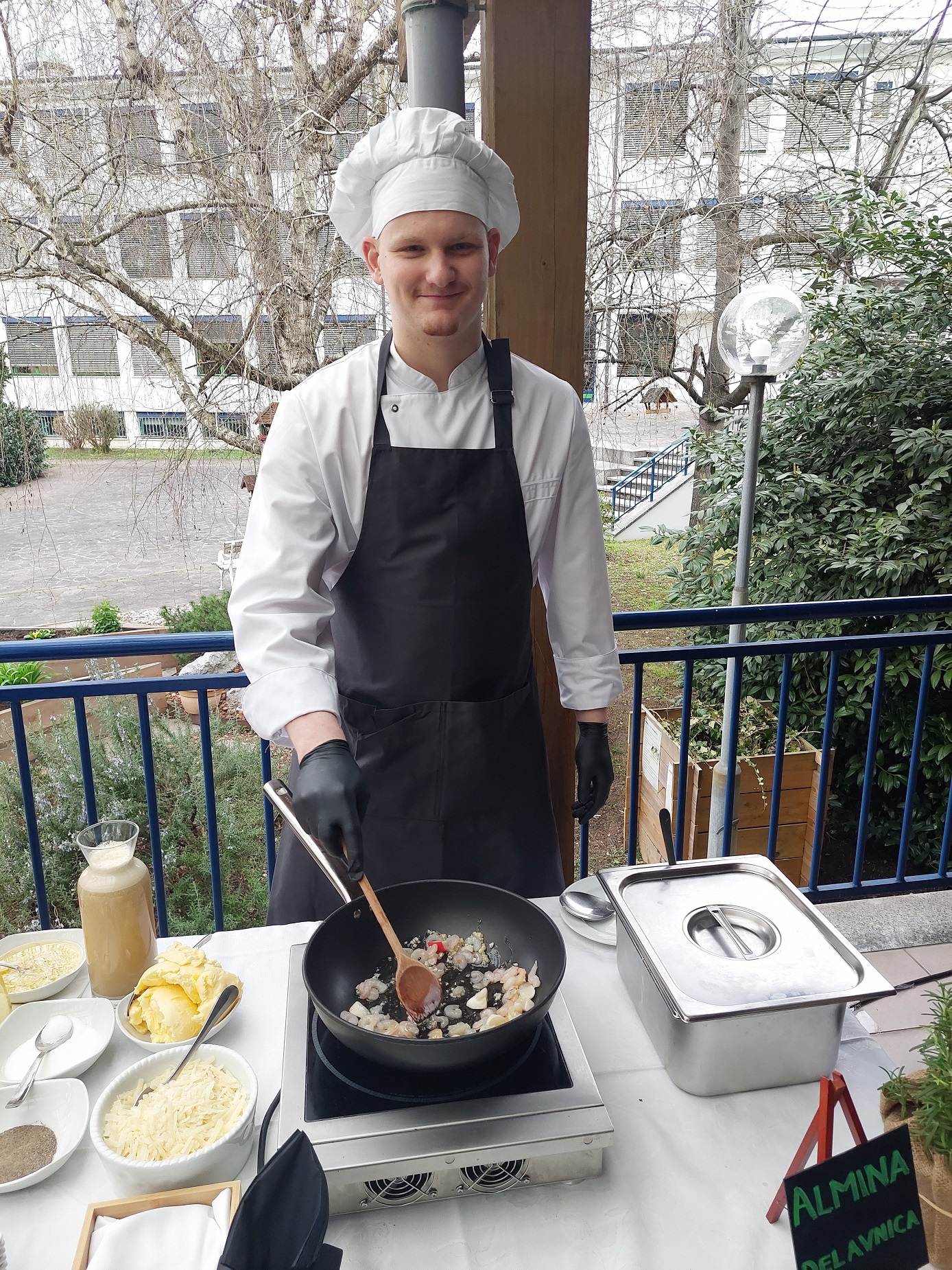 Pogostitev so pripravili dijaki in predstavlja njihovo zaključno nalogo pri poklicni maturi. Izpod njihovih prstov so tako nastale slane in sladke kulinarične mojstrovine s pridihom Italije, hkrati pa so poskrbeli tudi za odlične italijanske koktajle. Za piko na i smo lahko preizkusili tudi Almino penino in Almino vino.