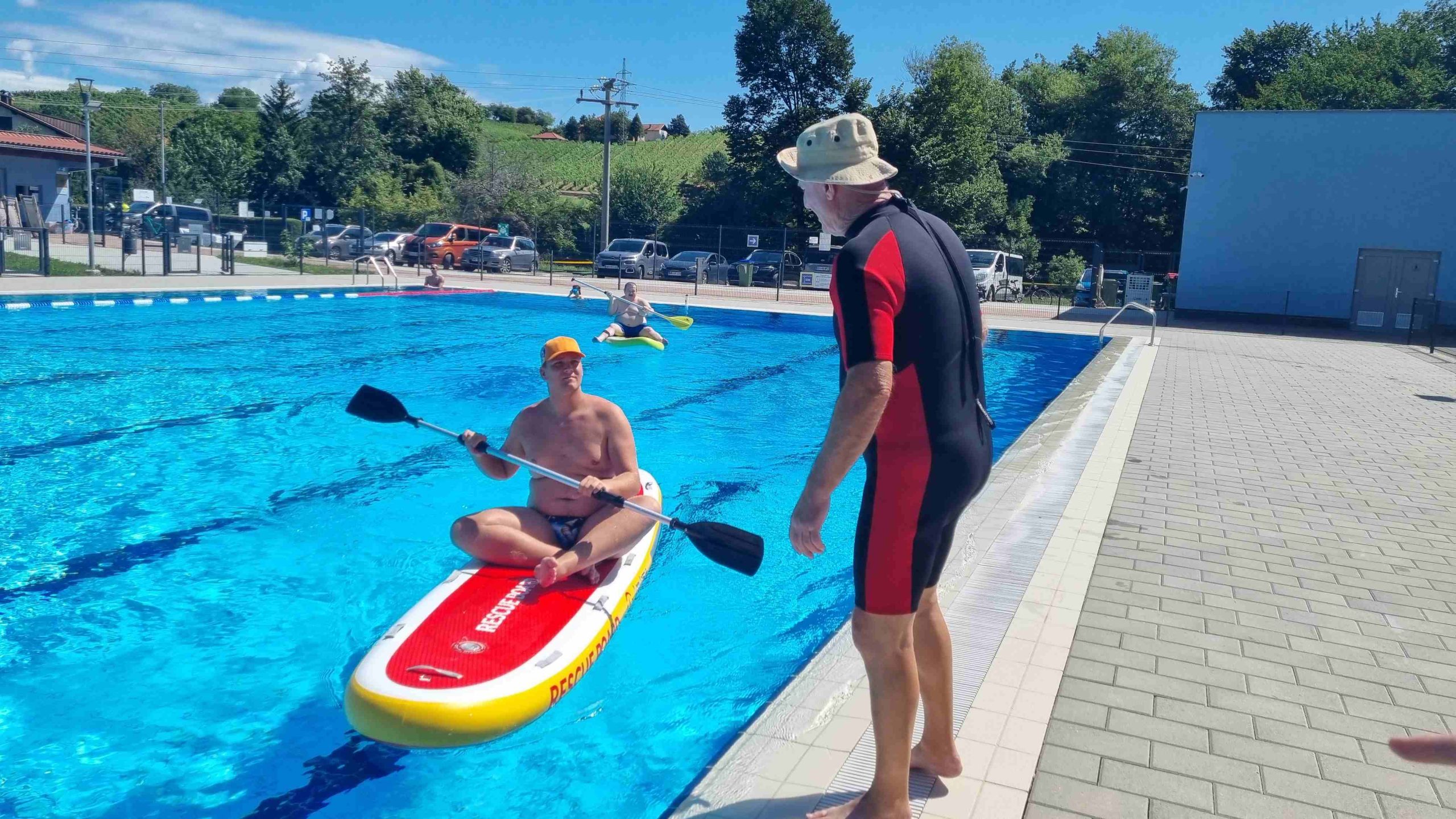 Tako so danes med drugimi zaplavali tudi stanovalci konjiškega Lambrechtovega doma (med njimi gospa, stara 86 let) in varovanci Socialno varstvenega zavoda Hrastovec. Obiskovalci se lahko brezplačno preizkusijo v različnih vodnih aktivnostih – od plavanja do potapljanja in vožnje s supom ali čolnom.