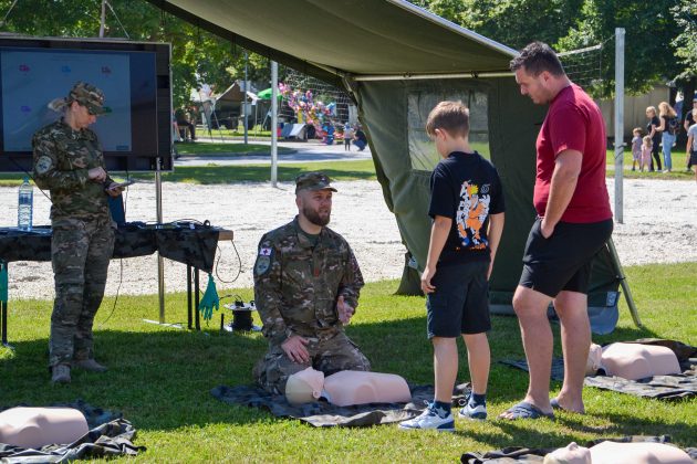 Sobotno sončno vreme je v Vojašnico Vincenca Repnika Slovenska Bistrica privabilo veliko število obiskovalcev, ki so prišli na dan odprtih vrat vojašnice. Slovenska vojska z dnevi odprtih vrat svojih vojašnic in vadišč izreka dobrodošlico državljankam in državljanom. Med njimi so bile številne družine z majhnimi otroci, ki so si z velikim veseljem ogledovali vojaška vozila in vojaško opremo. Zanimanje vseh je zbudilo tudi strelišče z zračno puško, vojaška policija, in še posebej vojaška bolnica. Sodelovala so tudi lokalna društva in civilne organizacije – predstavili so se bistriški gasilci in policisti ter številni drugi. Veliko pozornosti je pritegnila tudi družina Gajser. (GA)