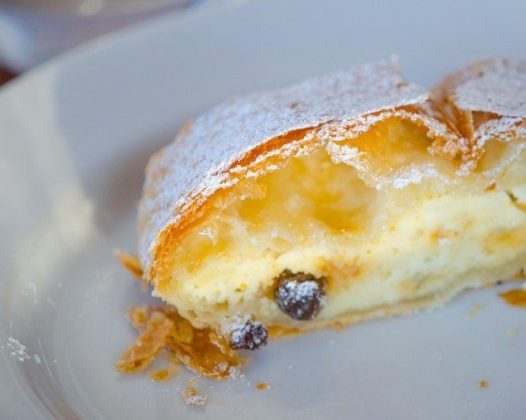 Po želji potresem po skutinem nadevu naribana sladka jabolka in rozine, v tem primeru dodamo malo mletega cimeta.