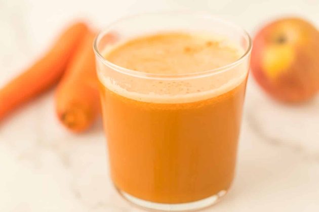 Steklenice operemo in steriliziramo v pečici na 100 stopinj. V loncu kuhamo korenje, da se zmehča. Breskve operemo, odstranimo koščico in jih narežemo h kuhanemu korenju. Spasiramo s paličnim mešalnikom, sladkamo in dodamo citronko. Še enkrat prevremo in vrel sok nalijemo v steklenice, ki jih dobro zatesnimo.