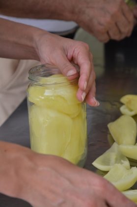 Paprike zalijemo z vrelo tekočino iz lonca in pri tem pazimo, da je paprika v celoti pokrita s tekočino. Kozarce tesno zapremo, pokrijemo z odejo in pustimo, da se počasi ohladijo.