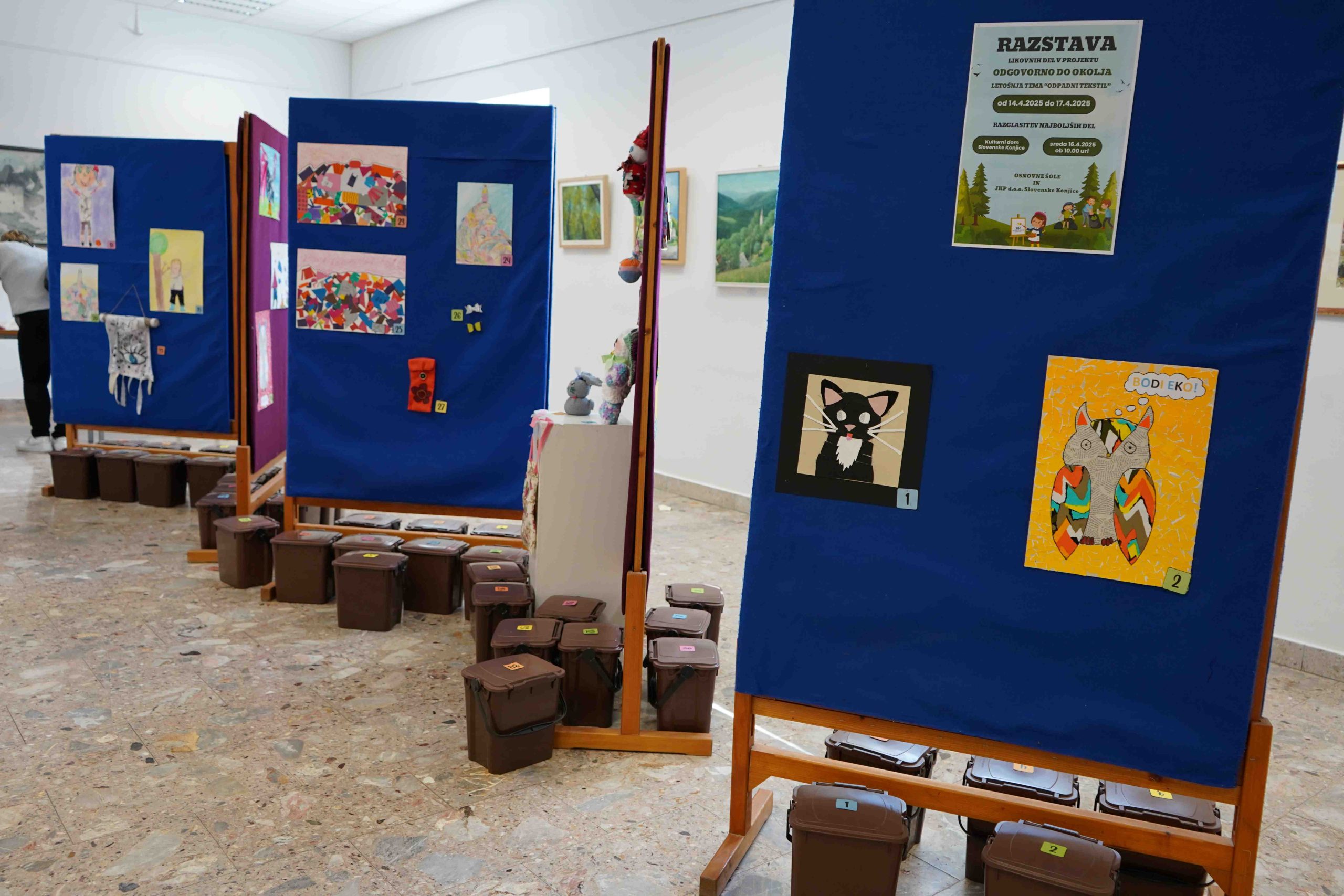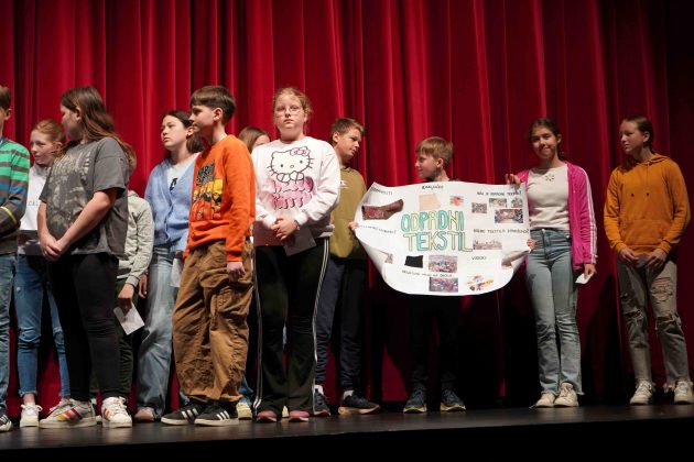 Šolarji so se udeležili ‘eko parlamenta’, kjer so razpravljali o problematiki odpadnega tekstila, obenem pa so iz odpadnega tekstila tudi likovno ustvarjali. Na zaključni prireditvi, ki so jo danes dopoldne pripravili v konjiškem Domu kulture, so nagradili avtorje najboljših likovnih del, pripravili razstavo in razglasili najbolj ‘eko’ razrede, v zahvalo za sodelovanje so si učenci ogledali še predstavo gledališča Pravljičarna.