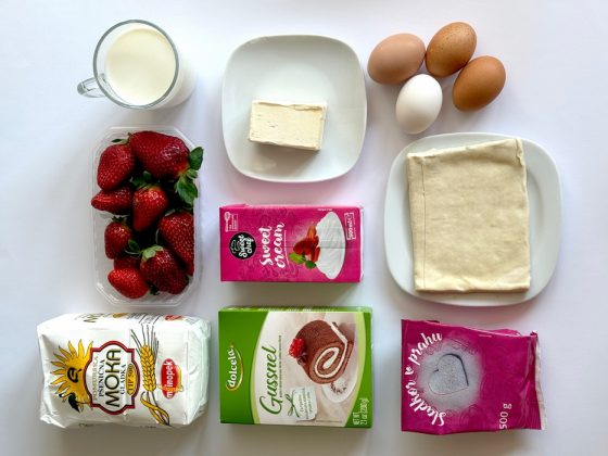 Ko imamo vse sestavine pripravljene, lahko začnemo s sestavljanjem kremšnit v kozarcu. Na dno kozarcev razporedimo nadrobljeno listnato testo, čez njega položimo sveže narezane jagode in dodamo vanilijevo kremo. Na vrh nabrizgamo stepeno sladko smetano, po želji pa okrasimo še s koščkom listnatega testa ali svežimi jagodami.