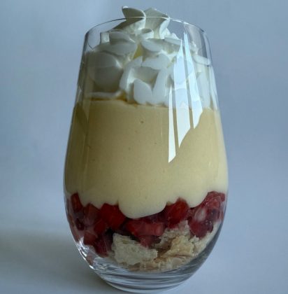 »V prostem času rada ustvarjam tudi v kuhinji. Ena mojih najljubših sladic je kremšnita v kozarcu z jagodami ali drugim sadjem – sodobna različica klasike, ki združuje bogato vaniljevo kremo, hrustljavo listnato testo in osvežilno sadje. Hitro pripravljena, a vedno navduši, tako ob posebnih priložnostih kot takrat, ko si samo zaželim nekaj sladkega,« pravi Neja.