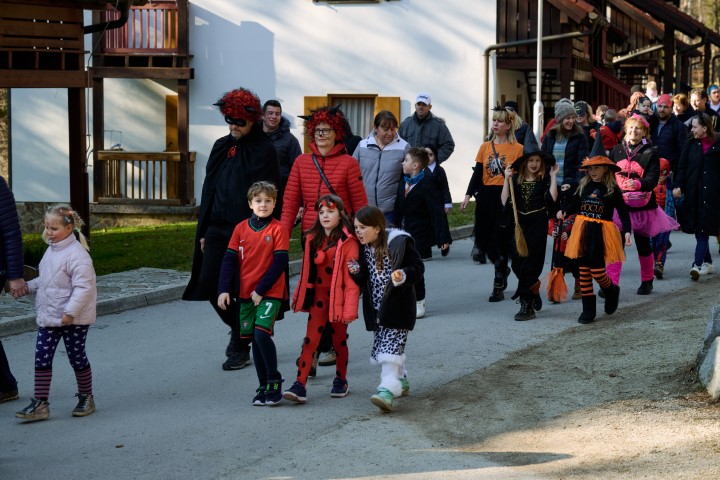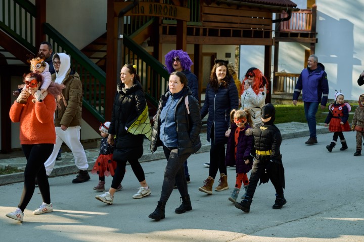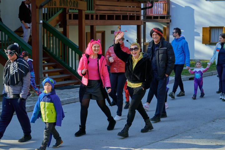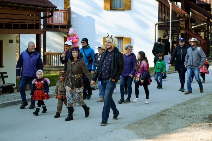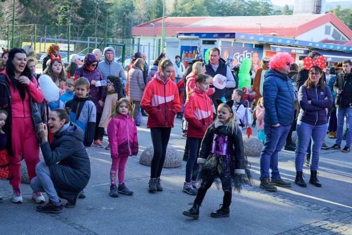 S pisano povorko po Zrečah so maškare najprej odganjale zimo. Za dober korak je poskrbela domača zreška godba, ki je bila izvirno našemljena. Sledilo je rajanje na ploščadi, v katerem so ob Alenki Kolman zaplesali in zapeli najmlajši in najstarejši obiskovalci. Na pustnem potovanju z vlakom so se pod Alenkinim vodstvom vrstili plesi od dunajskega valčka do hitrega ruskega kazačoka. Neumorno so se vrtele tudi prisotne maskote, veverička Emilija s Poti pod krošnjami in Jan iz risane serije Super krila. Vse maske so še obdarili s toplim čajem in slastnim krofom.
