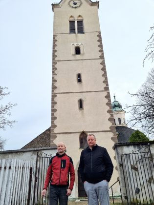 Skrivnosti konjiškega cerkvenega zvonika smo odkrivali s konjiškim arhidiakonom Jožetom Vogrinom in cerkvenim urarjem Tomažem Drofenikom.