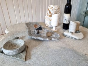 Izpod Marjanovih rok nastajajo pladnji in krožniki s certifikatom vrhunske kakovosti Rokodelstvo Art&Craft Slovenija in certifikatom KBZ Naše najboljše. Na njih svoje jedi strežejo tudi v resta-vracijah z Michelinovimi zvezdicami. Kamen je namreč odličen material za strežbo hrane, saj ga je mogoče zelo segreti ali ohladiti. Tako hrana na kamnu poleti dlje časa ostane hladna, pozimi pa topla, Marjan pa je tudi prepričan, da je postrežena na kamnu veliko okusnejša.