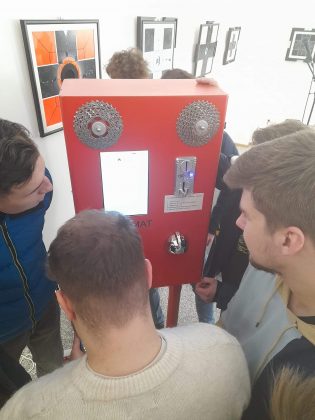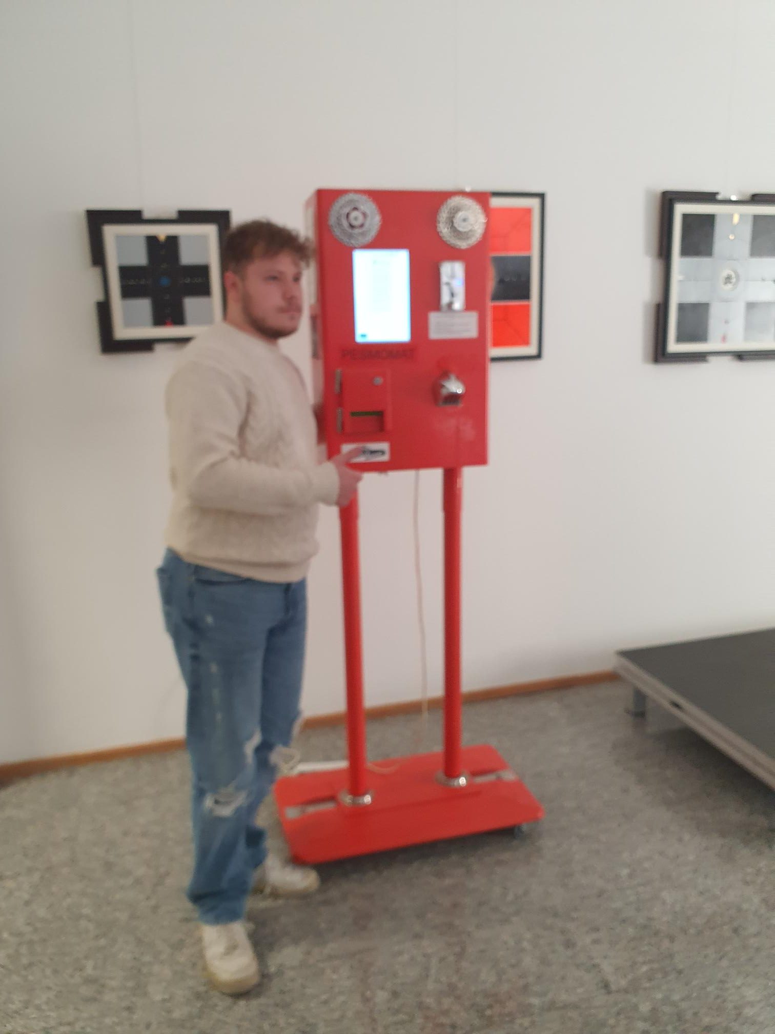 V Veliki galeriji Doma kulture so v torek dopoldne namreč predstavili prototip prvega slovenskega pesmomata, ki ga njegovi snovalci imenujejo pesniška mašina.