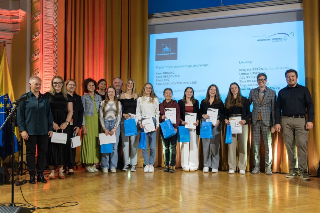 Pred nedavnim je v Narodnem domu v Celju potekala slavnostna podelitev MEPI priznanj, ki jo je letos organizirala Gimnazija Celje – Center. Priznanja je prejelo 57 mladih iz celjskih osnovnih in srednjih šol, med njimi tudi 7 dijakinj GCC. Bronasta priznanja MEPI so prejele: Lana Krajnc, Lana Verbovšek, Pika Lekš in Tara Zabukovšek Lipovšek, srebrno pa: Maša Lončar, Zala Učakar in Živa Rešetar. Dogodek je z obiskom počastila britanska veleposlanica Victoria Harrison, kulturni program pa so oblikovali MEPI-jevci z GCC, plesna skupina GCC in The Šlagers. Foto: Maj Mravlak.