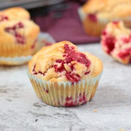 Najprej ločimo beljake in rumenjake. Rumenjake, sladkor in vanilin sladkor mešamo, dodamo maslo in mleko, nato dodamo še moko in pecilni prašek. Beljake v posebni posodi stepemo v sneg in ga narahlo vmešamo v zmes. V namaščen pekač za muffine razdelimo testo in na koncu še v testo potisnemo maline. Pečemo na 170 stopinj okoli 25 minut.