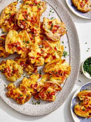 Krompir postavimo v pečico in ga pečemo približno pol ure pri 200°C, da postane hrustljav in zlato-rjave barve. Zapečen krompir potresemo z malo nasekljanega drobnjaka ali peteršilja.