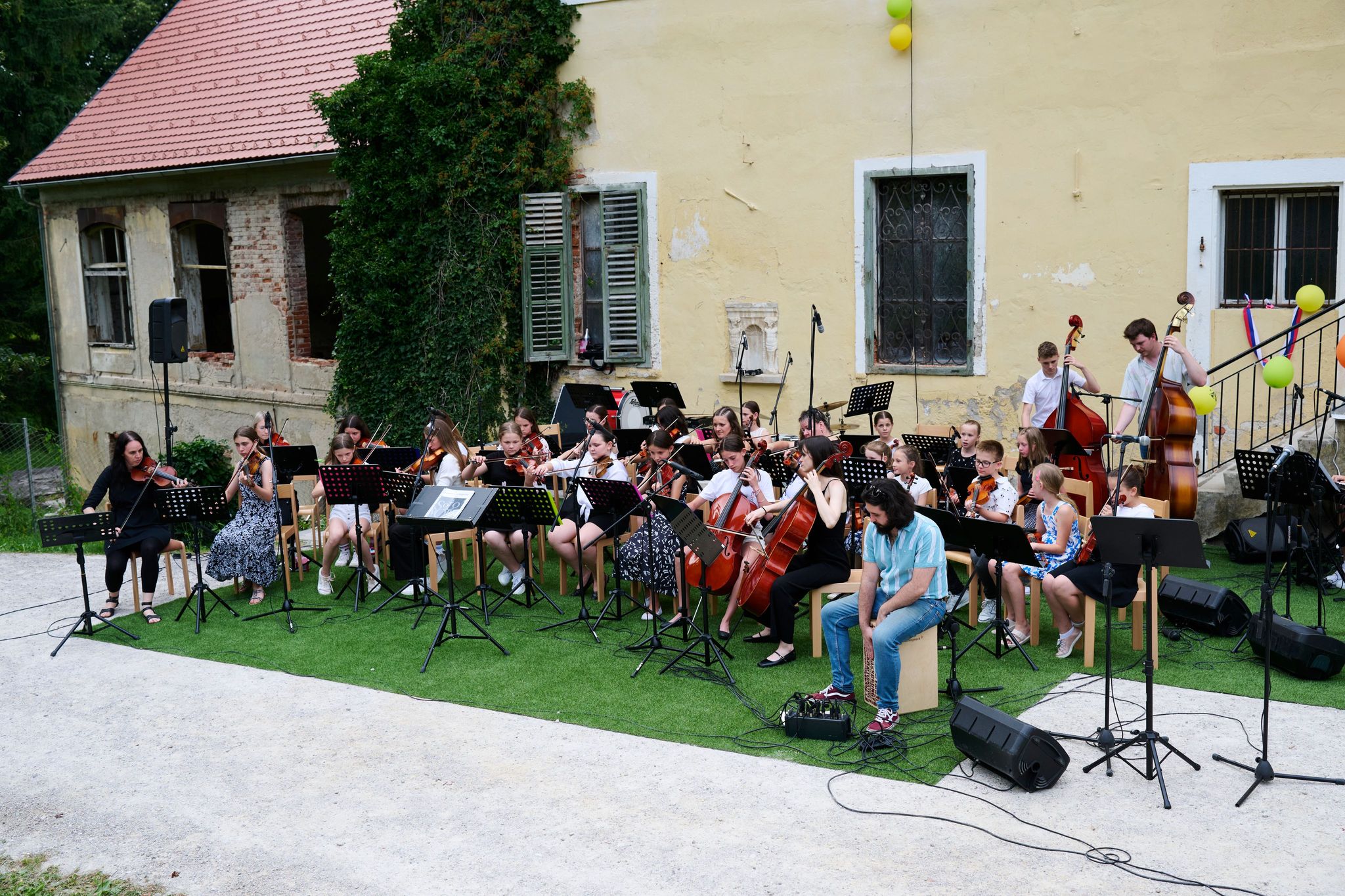Glasbena šola Slovenske Konjice je ob koncu šolskega leta na travniku pri Dvorcu Trebnik priredila koncert Pozdrav poletju. Občinstvo so v zgodnjih večernih urah razveseljevali šolski orkestri, nekaj komornih skupin in pevski solisti. Čeprav je Pozdrav poletju letos potekal že tretjič, je bil letošnji prav poseben: v sklopu prireditve so namreč v Dvorcu Trebnik odprli stalno razstavo slik pokojnega Arpada Šalamona. Slike je glasbeni šoli podarila žena Heda Vidmar, ki jo je na prireditvi doletela čast odprtja razstave. (A. S.)