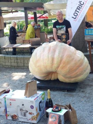 Skomarjan Primož Kotnik je letos pridelal najlepšo in tretjo najtežjo bučo v Sloveniji.