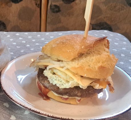 Preden burger postrežemo, ga prepiknemo z nabodalom. Otroci pravijo, da je trik, da ga lažje pojemo v tem, da ga obrneš na ”glavo”. 😊
