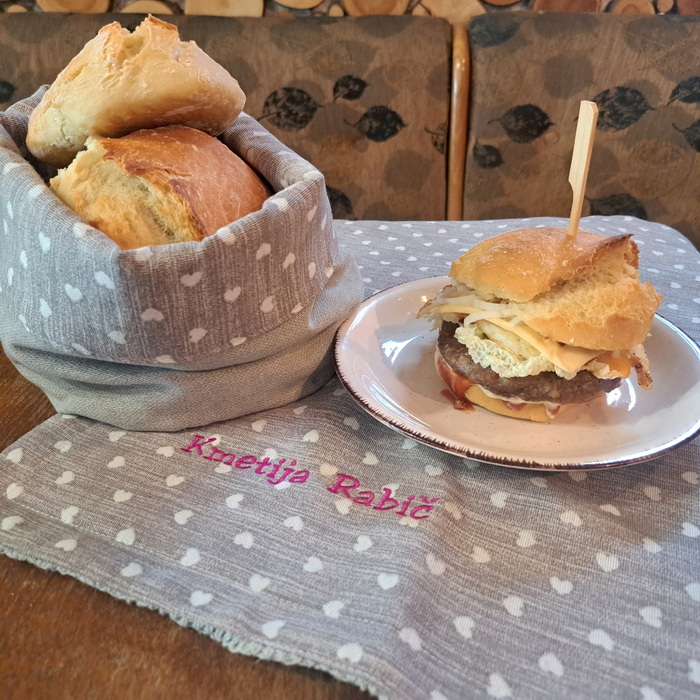 Vsesezonski hamburger mu rečemo zato, ker je aktualen skozi vso leto, saj mu lahko dodajamo kar nam narava, vrt in kmetija ponuja glede na letni čas. Zato se lahko z dodatki čisto po želji poigramo.