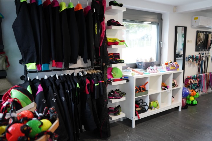 Poseben poudarek je na športni kinološki opremi, to je specializiranih oblačilih, obutvi in drugih potrebščinah za vodnike psov, ki so primerni tako za resne treninge kot običajne sprehode.