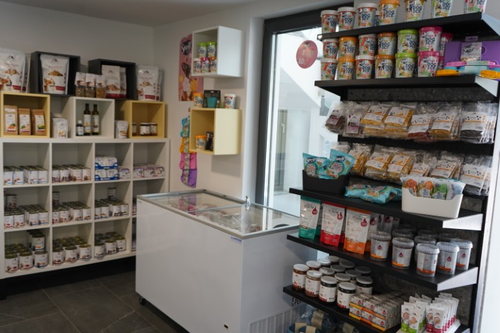 V prostorih na Tovarniški v Slovenskih Konjicah (najdemo jih tik ob podjetju Montis) ponujajo vse, kar potrebujejo mačke in psi: najrazličnejšo suho, mokro in surovo hrano, tudi hrano za živali za alergijami in drugimi težavami, celo pasji sladoled, pa priboljške, prehranska dopolnila, igrače, povodce in oprsnice, sredstva proti zaje-davcem, postelje, posodice, mačji pesek, …