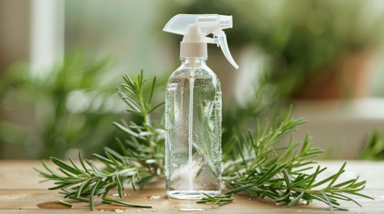 Potrebujemo: 4 vejice svežega rožmarina, 500 ml vode in čisto stekleničko z razpršilcem. Vodo zavremo in jo odstavimo z ognja. Dodamo svež rožmarin, pokrijemo in pustimo stati eno uro. Nato precedimo in nalijemo v stekleničko. Hranimo na hladnem največ do enega tedna.