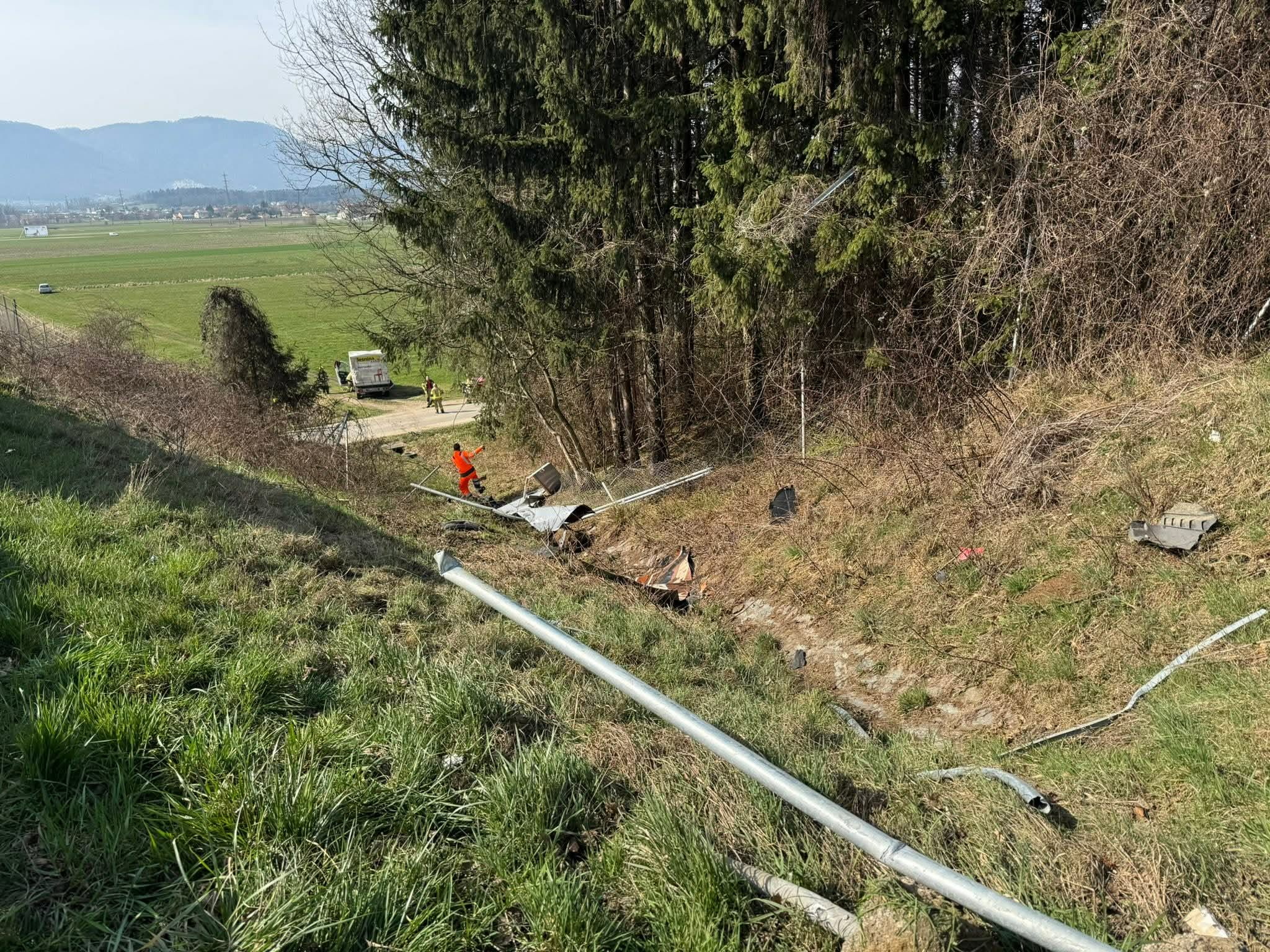 Z avtoceste med Slovensko Bistrico in Slovenskimi Konjicami, v konjiški občini, je včeraj zapeljalo kombinirano vozilo. Gasilci PGD Slovenske Konjice in Slovenska Bistrica so zavarovali kraj dogodka, nudili pomoč poškodovanima osebama do prihoda reševalcev NMP, odklopili akumulator in nevtralizirali iztekle motorne tekočine. Poškodovani osebi so prepeljali v UKC Maribor.
