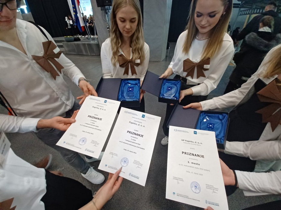 Na Srednji šoli Slovenska Bistrica so letos ustanovili kar tri učna podjetja. Najboljše med njimi, to je učno podjetje Papirko, pa je nato nastopilo še na Mednarodnem sejmu učnih podjetij. Tudi tam so navdušili: v konkurenci 38 učnih podjetij iz Slovenije in tujine jim je komisija dodelila priznanja na vseh treh ocenjevanih ravneh, in sicer za: najbolj izvirno poslovno idejo, najboljši sejemski nastop ter tretje mesto na mednarodnem tekmovanju.