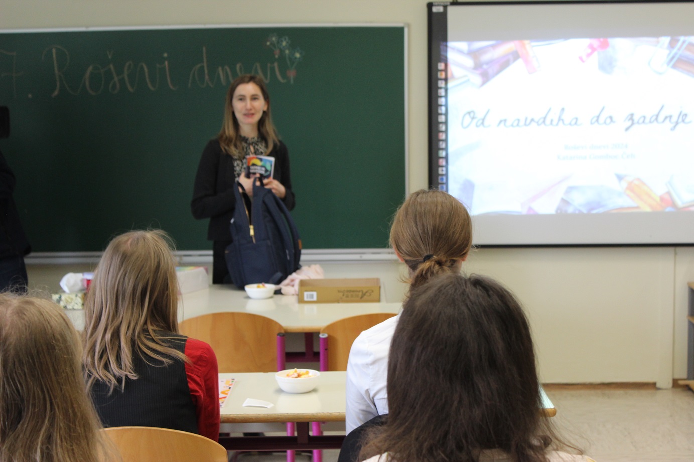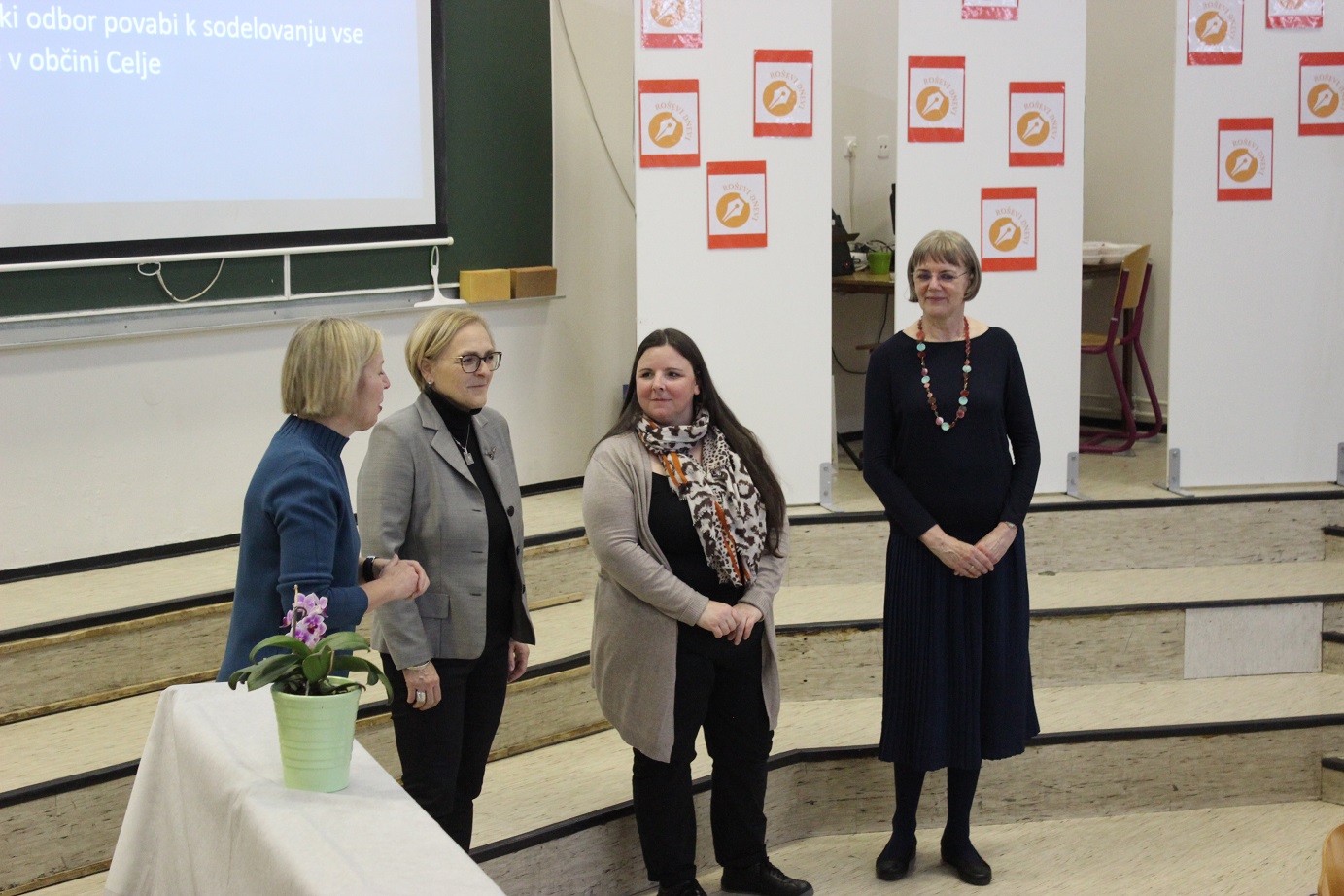 Strokovno komisijo sta sestavljali Mateja Gomboc, pisateljica, prevajalka, avtorica učbenikov za slovenski jezik in profesorica, ter Katarina Gomboc Čeh, pesnica, pisateljica, jezikoslovka in profesorica. Finalistke so postale Julija Gorišek iz OŠ Rovte, Neža Selič iz OŠ Štore, Mija Šterk iz OŠ Frana Roša Celje, Nuša Šuster iz OŠ Hudinja in Živa Toplak iz OŠ Šmartno. »Tudi letos so besedila dvajsetih najboljših avtorjev, med njimi petih finalistov, objavljena v posebnem zborniku, ki tokrat nosi naslov Naprej in navzgor,« je povedala Mojca Pliberšek, učiteljica na OŠ Frana Roša, pomočnica pri organizaciji Roševih dni, ki nam je zaupala več tudi o samem dogajanju. Podelitev nagrad namreč ni bil edini zanimiv dogodek tisti dan. Kaj vse se je dogajalo pred podelitvijo in kdo je dogodek dejansko organiziral preberite v Celjanu, mi pa z vami delimo nekaj foto utrinkov.