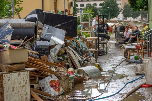 V Laškem bo po največjih poplavah, kar jih pomnijo, škoda ogromna. Sanacija se danes nadaljuje.