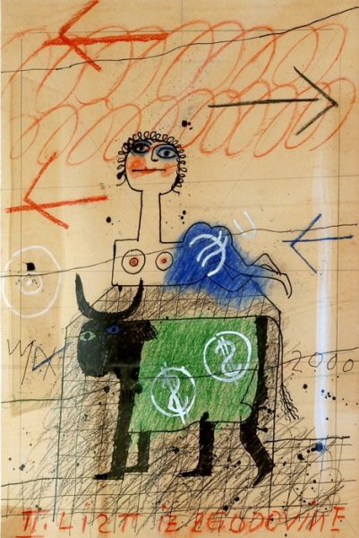 Miti so umetnikom pogosto služili kot sredstvo za kritiko sodobne družbe in opozarjanje na njene slabosti. S posameznimi temami iz antične mitologije so ustvarjalci opozarjali na nevarnosti tehnološkega napredka, potrošništvo oziroma na splošno na položaj človeka v sodobni družbi. V tem kontekstu se najpogosteje srečujemo z Ikarom, Prometejem in Aktajonom, medtem ko je bil motiv Ugrabitve Evrope pogost v času osamosvojitve Slovenije in priključevanja Evropski uniji.