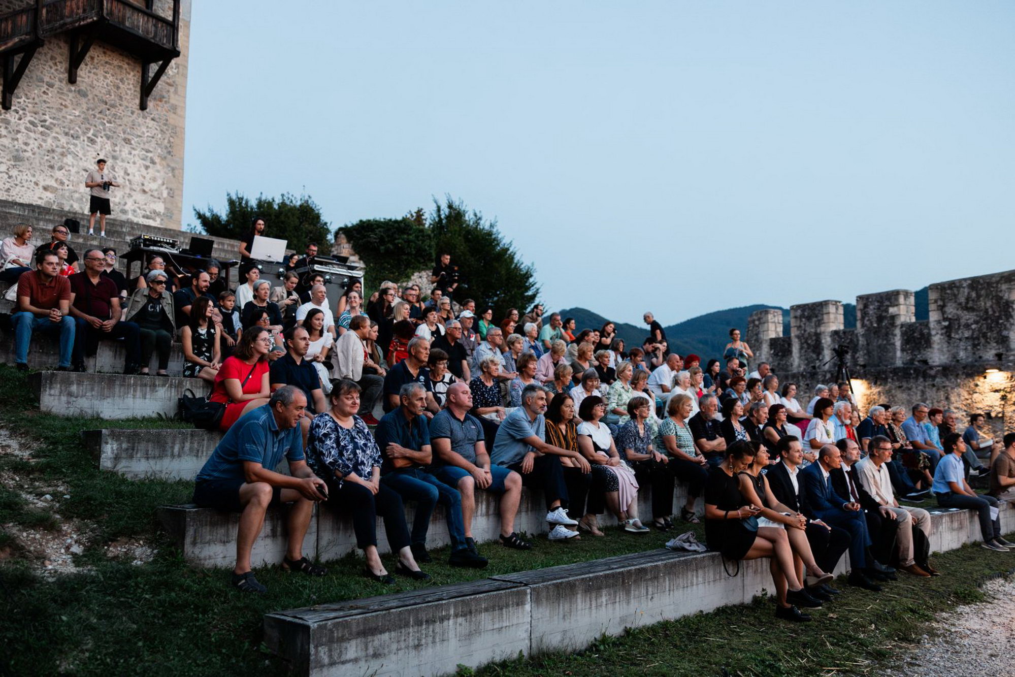 Stari grad je v svojem veličastnem ambientu gostil Veronikin večer poezije in glasbe. Mestna občina Celje je namreč letos podelila že 28. Veronikino nagrado. Letošnjo podelitev Veronikine nagrade, zlatnika poezije in male Veronike so popestrili Bilbi & Band, slavnostni govornik je bil Dušan Šarotar. Organizatorica Veronikine nagrade je od leta 2021 Hiša kulture Celje, prej jo je pripravljala družba Fit media. Foto: Lea Remic Valenti.