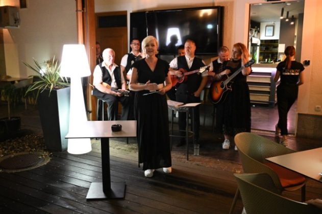 Resda je deževalo minuli petek zvečer, a to ni ustavilo zagnane ekipe Srečne ploščadi niti glasbenikov, ki so namesto pod zvezdnim nebom nastopili na pokriti terasi Kavarne Črne kos na zreški tržnici. Vzdušje je bilo morda nekoliko intimnejše, dobra volja zbranih, ki so glasno peli in tudi zaplesali s tamburaši, pa neizmerna.