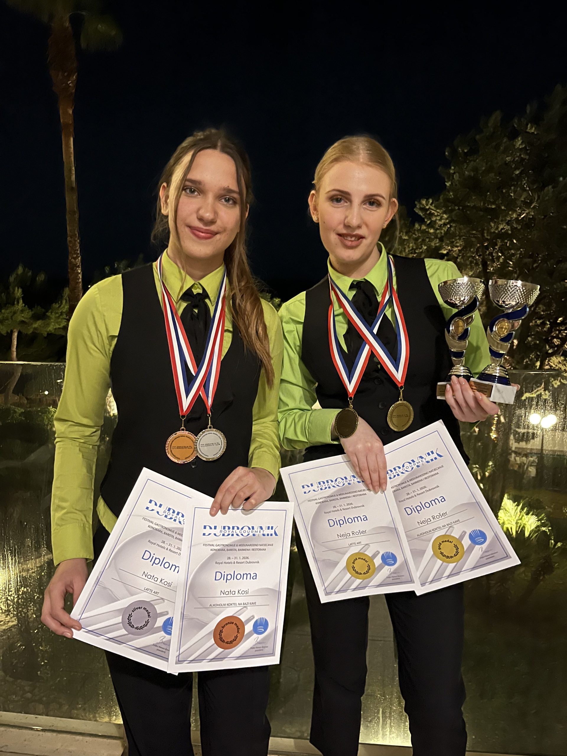 Dijakinji Šolskega centra Slovenske Konjice – Zreče sta na mednarodnem tekmovanju Gourmet Royal v Dubrovniku posegli po najvišjih mestih. Neja Rošer je osvojila dve zlati medalji, pokal za najboljši ‘latte art’ in postala skupna zmagovalka tekmovanja v kategoriji barist, Nata Kosi pa je domov prinesla bronasto in srebrno odličje.